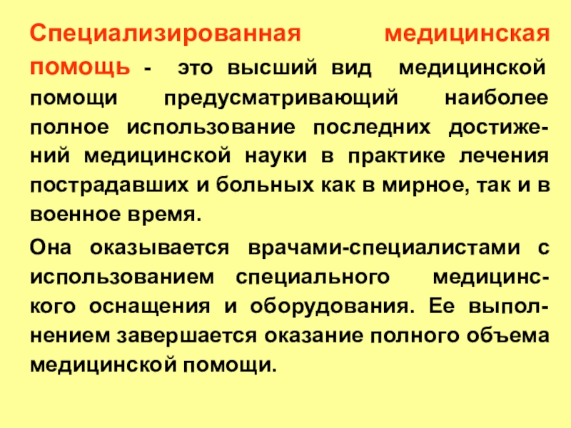 Слайд 15Специализированная медицинская помощь - это высший вид медицинской помощи предусматривающий