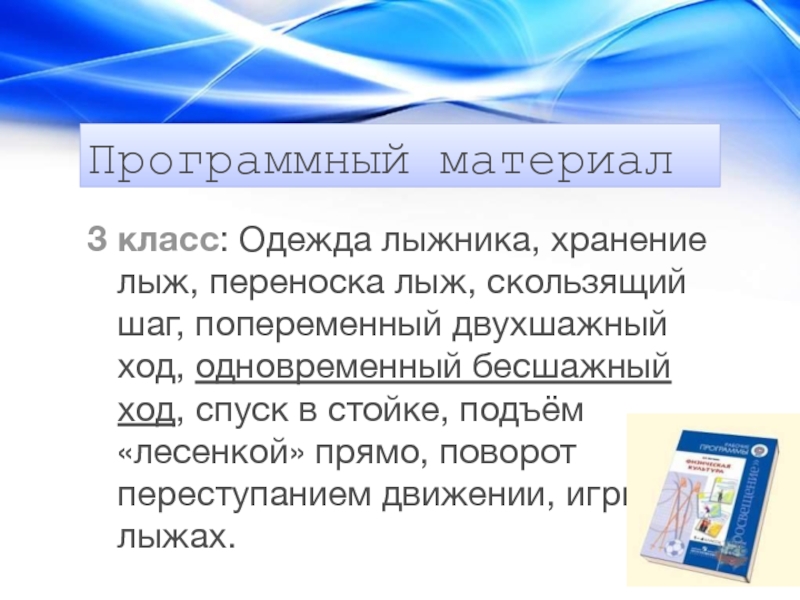 3. На занятиях по лыжной подготовке должна быть аптечка, укомплектованная необходимыми медикаментами и перевязочными средствами для оказания первой медицинской помощи пострадавшим.