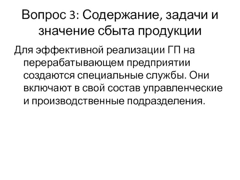 Слайд 18Вопрос 3: Содержание, задачи и значение сбыта продукции