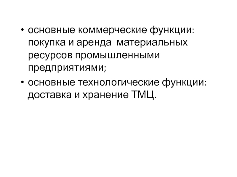 Слайд 5основные коммерческие функции: покупка и аренда материальных ресурсов промышленными предприятиями;