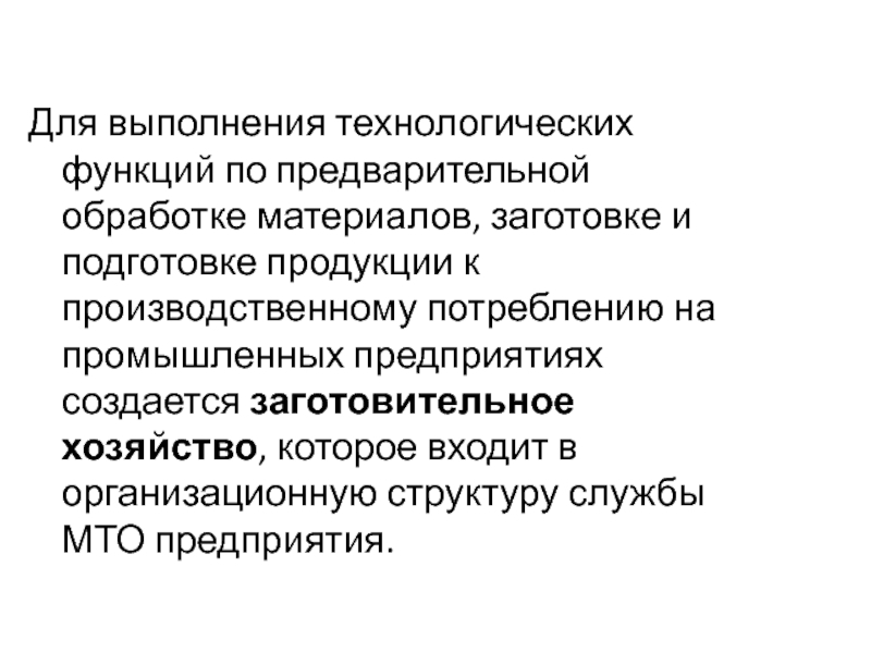 подготовке продукции к производственному потреблению на промышленных предприятиях создается заготовительное