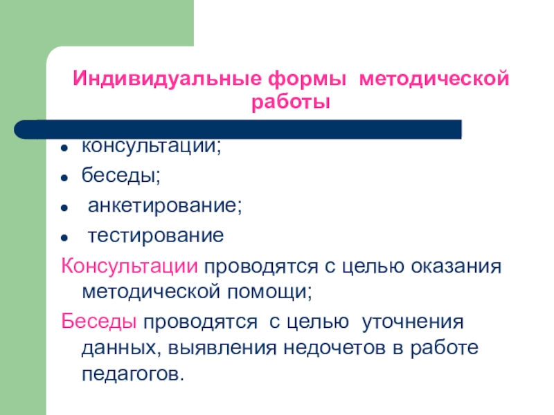 предусматривается годовым планом, обусловлена фактическим уровнем профессиональных знаний, умений, педагогов При проведении консультации педагог должен:
