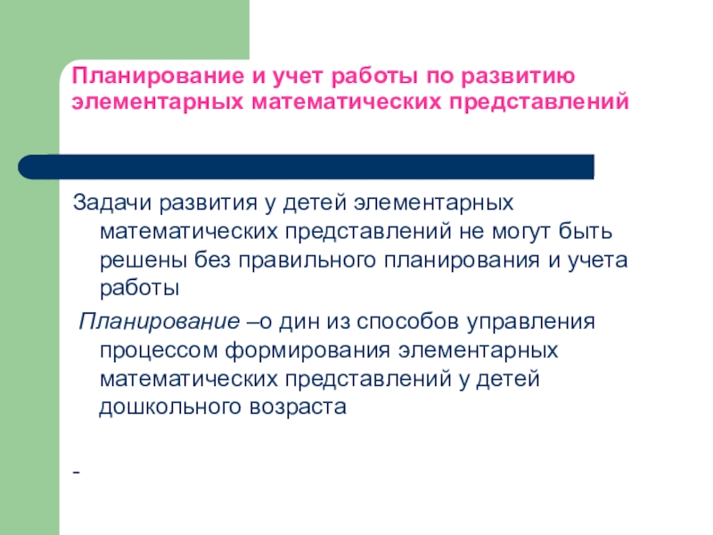Слайд 4Планирование и учет работы по развитию элементарных математических представлений