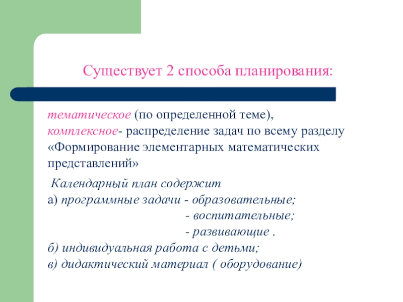лишь образовательные задачи. В его содержание входит распределение программных задач