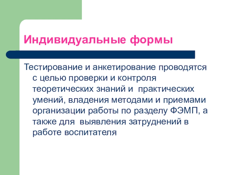 Слайд 20Тестирование и анкетирование проводятся с целью проверки и контроля теоретических