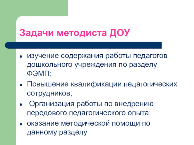 Слайд 11Организация методической работы с воспитателями по формированию элементарных математических представлений