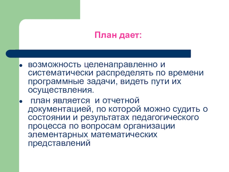 Планирование –о дин из способов управления процессом формирования элементарных математических представлений у детей дошкольного возраста