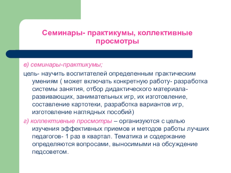 Слайд 16Семинары- практикумы, коллективные просмотры