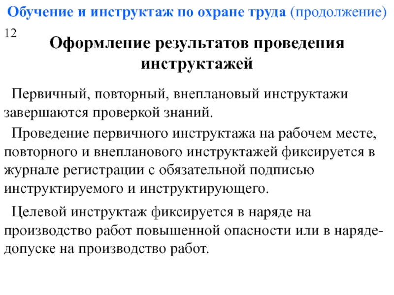 Инструктаж проводит инженер по ОТ с обязательной записью в журнале и подписью инструктируемого.