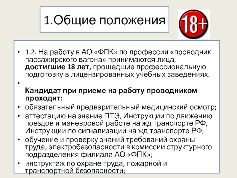 1.2. На работу в АО «ФПК» по профессии «проводник