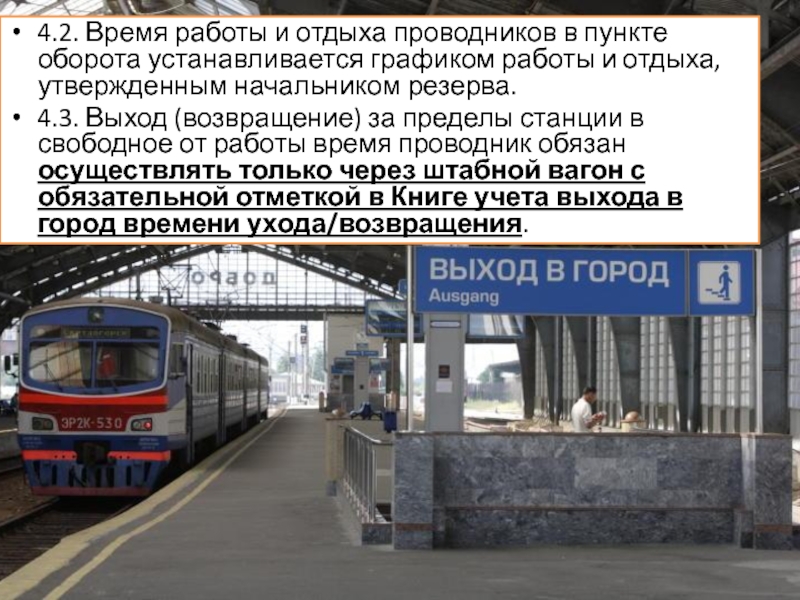 Слайд 154.2. Время работы и отдыха проводников в пункте оборота устанавливается