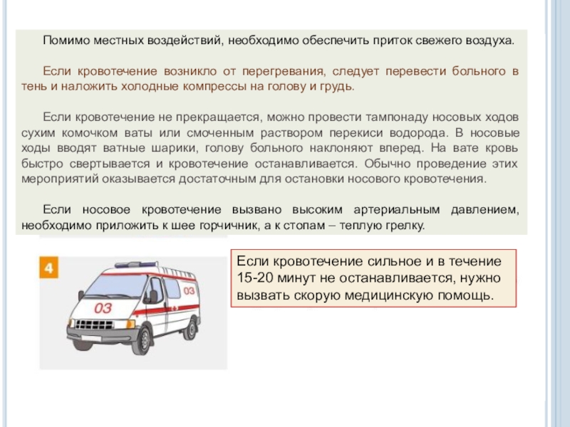 Если кровотечение сильное и в течение 15-20 минут не останавливается, нужно вызвать скорую медицинскую помощь.