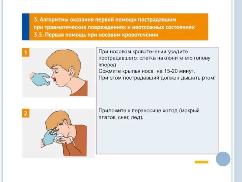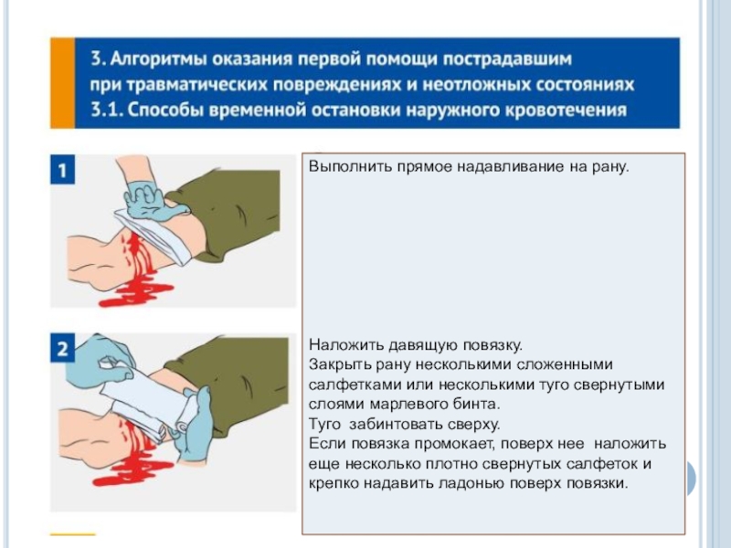Использовать медицинские перчатки для защиты от биологических жидкостей пострадавшего.