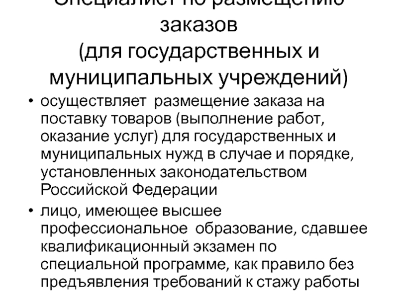лицо, имеющее высшее профессиональное образование, сдавшее квалификационный экзамен по специальной программе, как правило без предъявления требований к стажу работы