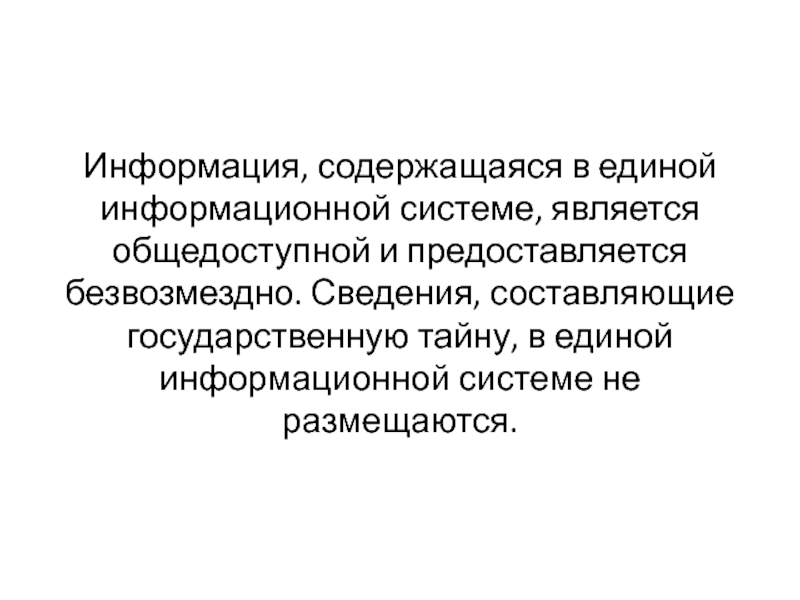 Слайд 17Информация, содержащаяся в единой информационной системе, является общедоступной и предоставляется