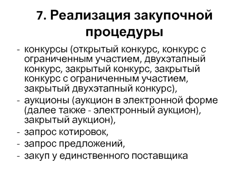 конкурсы (открытый конкурс, конкурс с ограниченным участием,