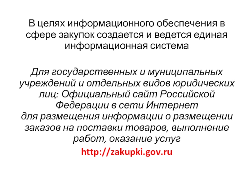 Слайд 13В целях информационного обеспечения в сфере закупок создается и ведется