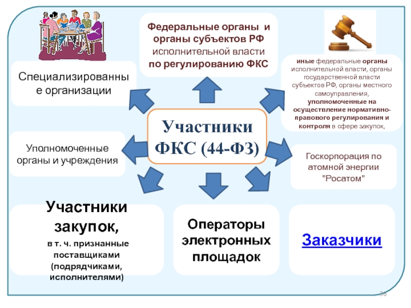 Государственные органы, органы управления государственными внебюджетными фондами, органы местного самоуправления, казенные и бюджетные учреждения, Государственная корпорации и подведомственные ем организации, а в отдельных случаях автономные учреждения, государственные и муниципальные унитарные предприятия