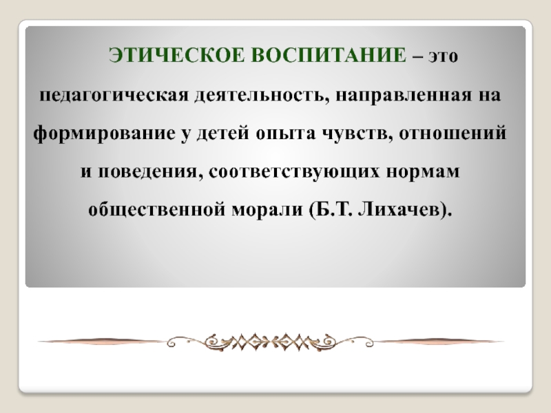 Слайд 6ЭТИЧЕСКОЕ ВОСПИТАНИЕ – это педагогическая деятельность, направленная на формирование у