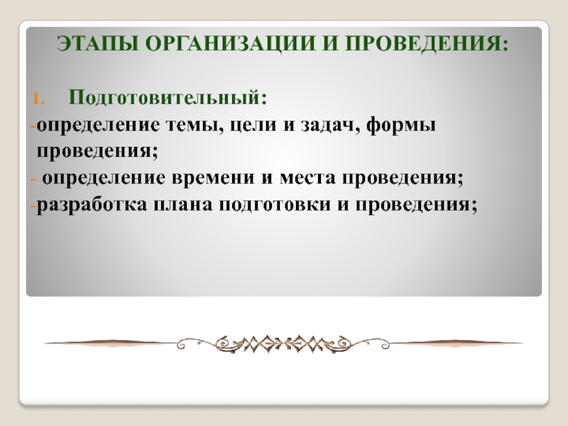МЕРОПРИЯТИЯ – события, занятия, организуемые педагогом с целью непосредственного воспитательного