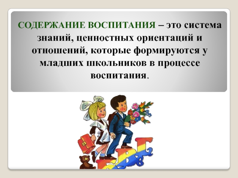 Слайд 3Содержание воспитания – это система знаний, ценностных ориентаций и отношений,