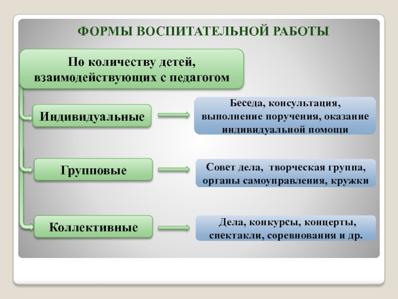 Слайд 24 ФОРМА ВОСПИТАТЕЛЬНОЙ РАБОТЫ -