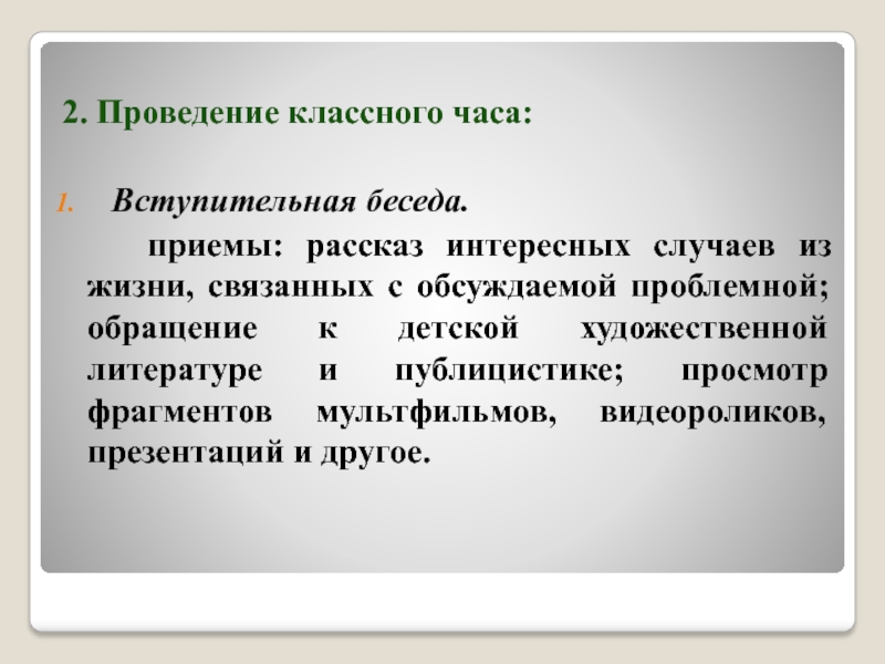 литературе и публицистике; просмотр фрагментов мультфильмов, видеороликов, презентаций и другое.