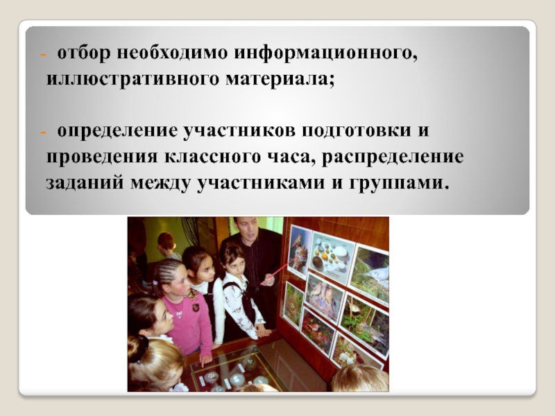 Слайд 30 отбор необходимо информационного, иллюстративного материала;