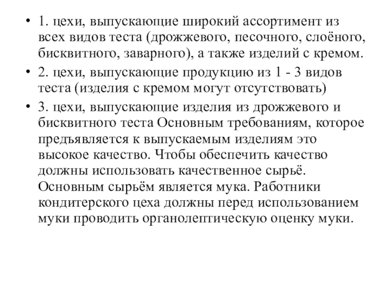 Слайд 211. цехи, выпускающие широкий ассортимент из всех видов теста (дрожжевого,