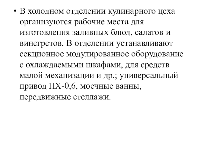 Слайд 8В холодном отделении кулинарного цеха организуются рабочие места для изготовления