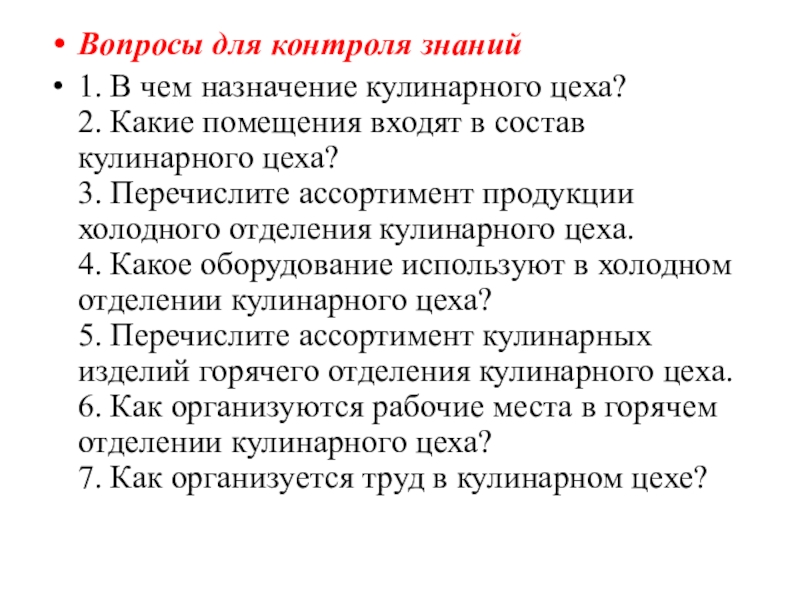 1. В чем назначение кулинарного цеха?