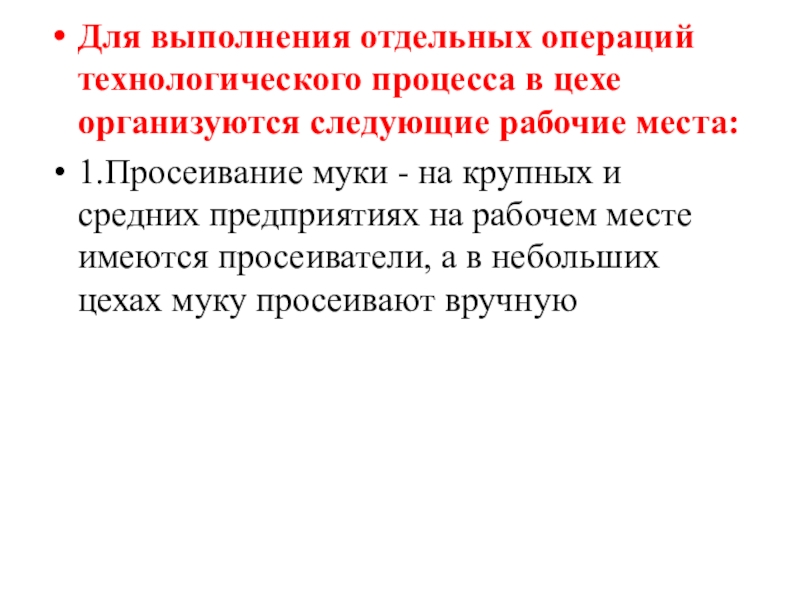 1.Просеивание муки - на крупных и средних предприятиях на