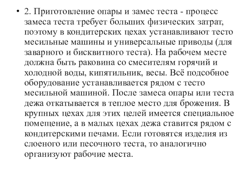 требует больших физических затрат, поэтому в кондитерских цехах устанавливают тесто