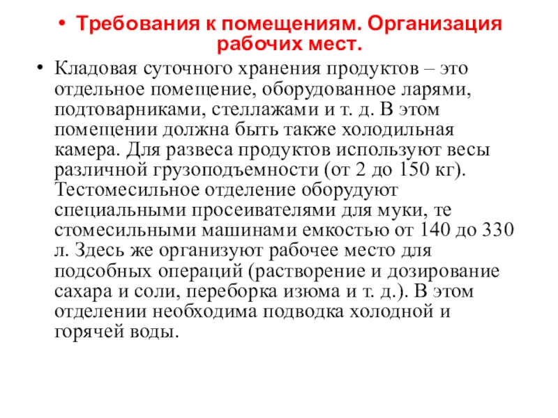 Слайд 29В кладовой для хранения сухих продуктов (муки, сахара, крахмала) должна