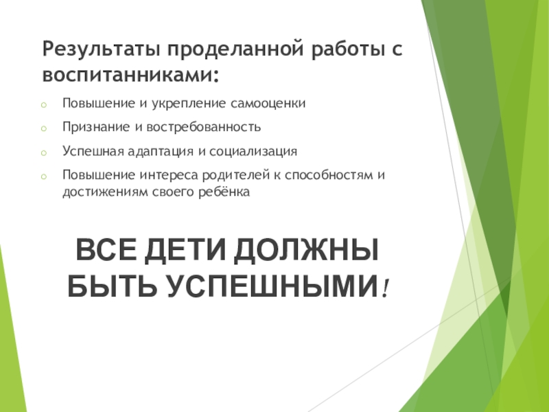 Слайд 17Результаты проделанной работы с воспитанниками: