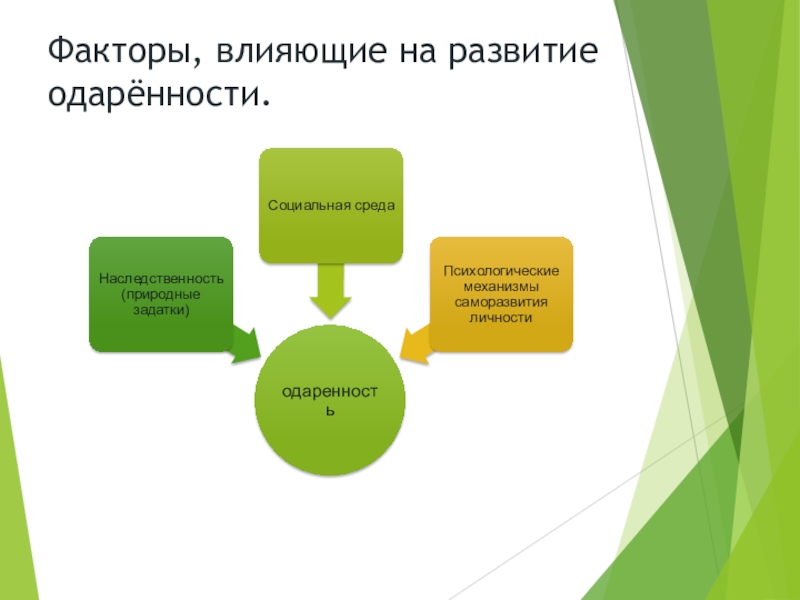 Слайд 6Факторы, влияющие на развитие одарённости.