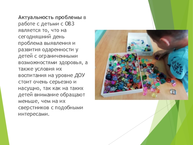 Слайд 4Актуальность проблемы в работе с детьми с ОВЗ является то,