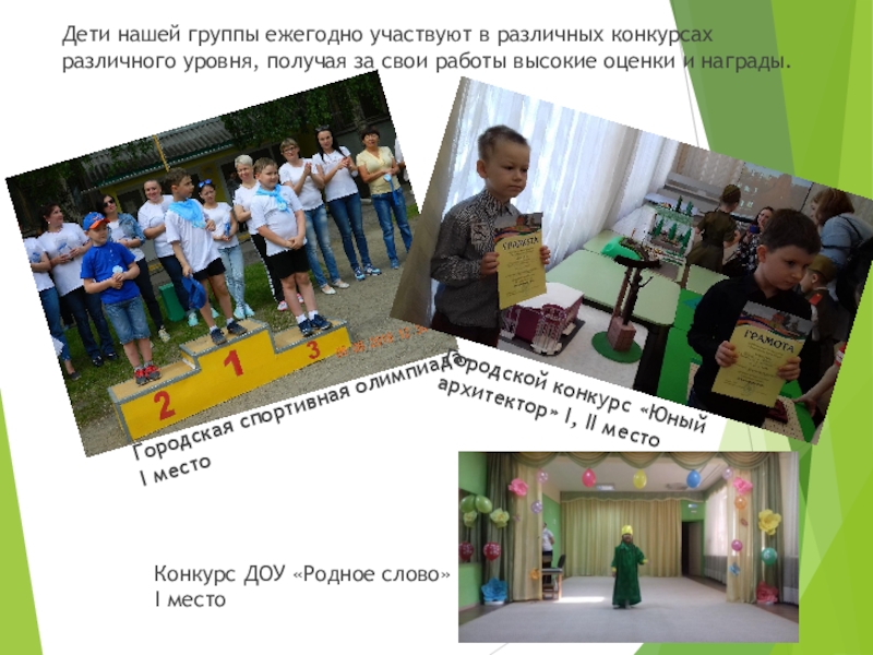 Слайд 15Дети нашей группы ежегодно участвуют в различных конкурсах различного уровня,