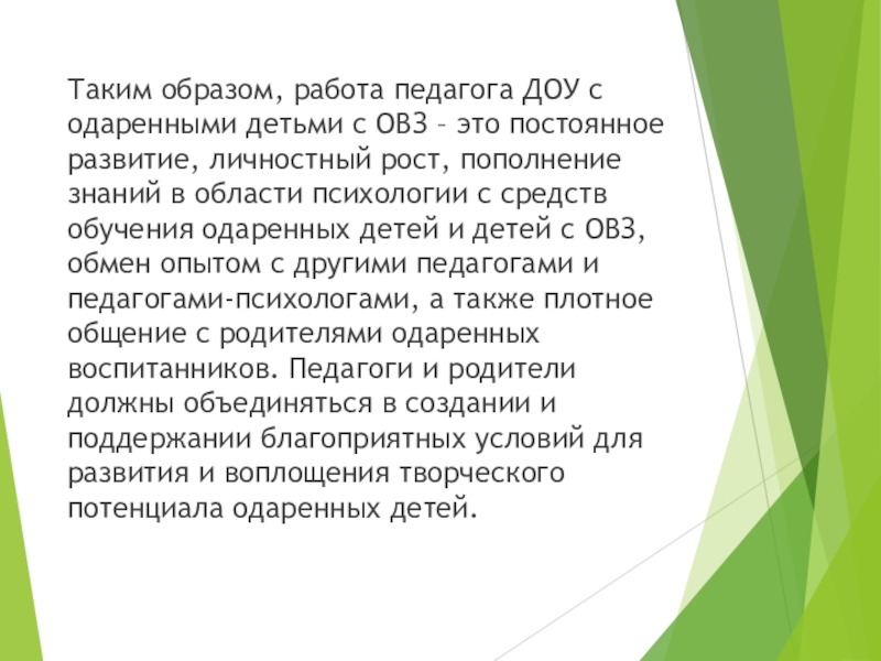 Слайд 18Таким образом, работа педагога ДОУ с одаренными детьми с ОВЗ