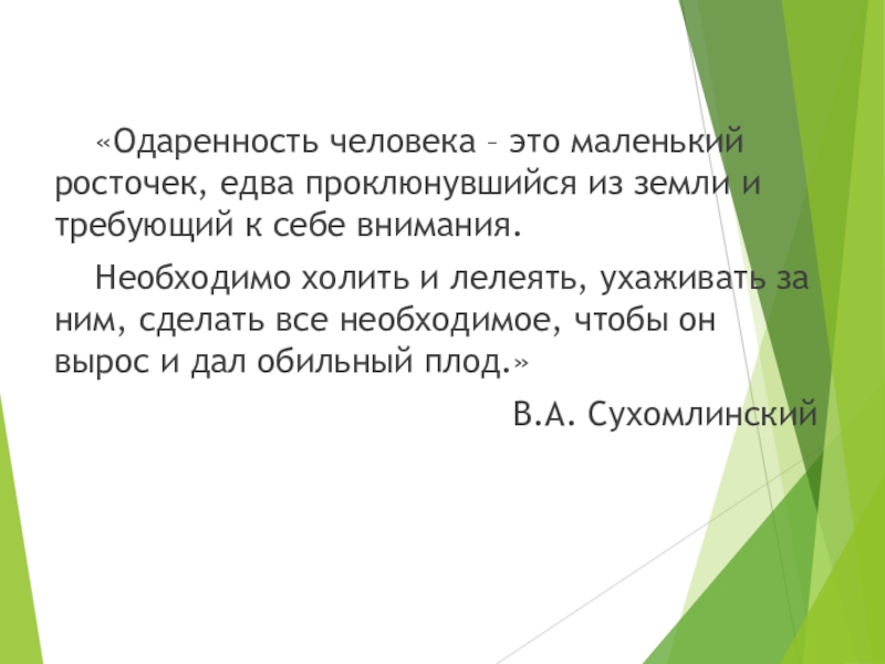 Слайд 2 «Одаренность человека – это маленький росточек, едва проклюнувшийся