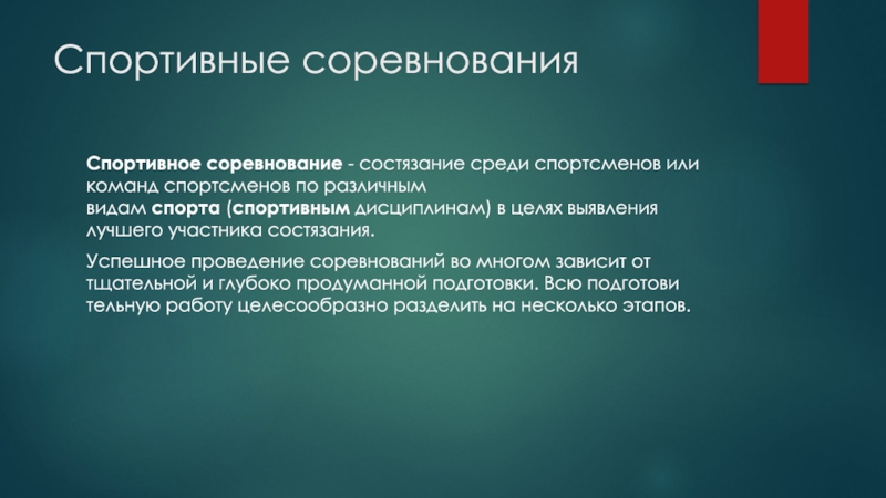 Спортивное соревнование - состязание среди спортсменов или команд спортсменов по различным