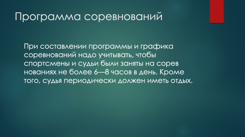 При составлении программы и графика соревнований надо учитывать, чтобы