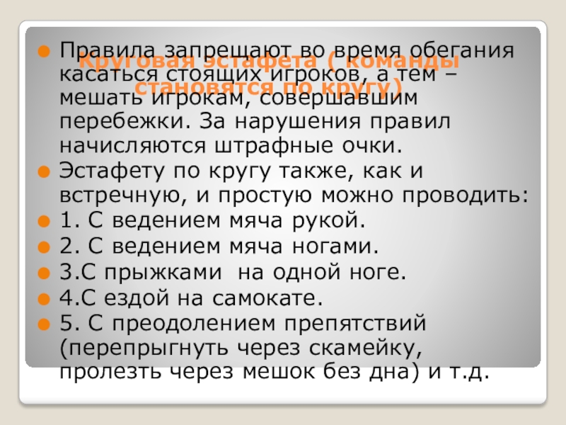 Слайд 9Круговая эстафета ( команды становятся по кругу)