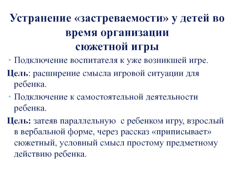 Слайд 14Устранение «застреваемости» у детей во время организации