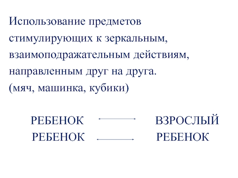 Цель: затеяв параллельную с ребенком игру, взрослый в вербальной форме, через рассказ «приписывает» сюжетный, условный смысл простому предметному действию ребенка.