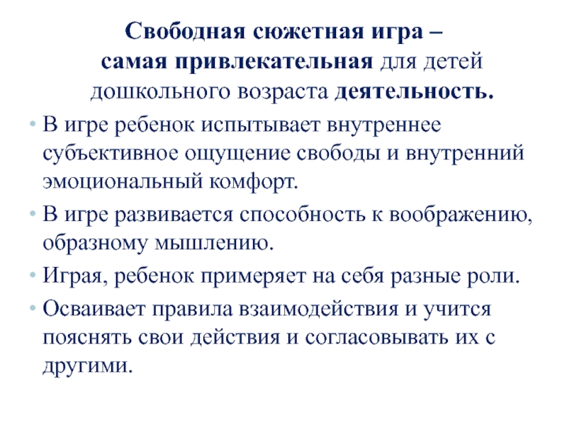 В игре ребенок испытывает внутреннее субъективное ощущение свободы и внутренний эмоциональный комфорт.