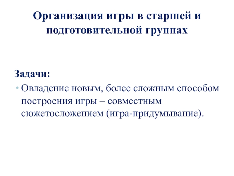 способом построения игры – совместным сюжетосложением (игра-придумывание).
