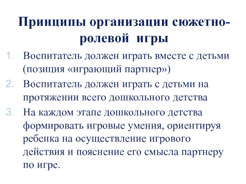 Слайд 6Принципы организации сюжетно-ролевой игры