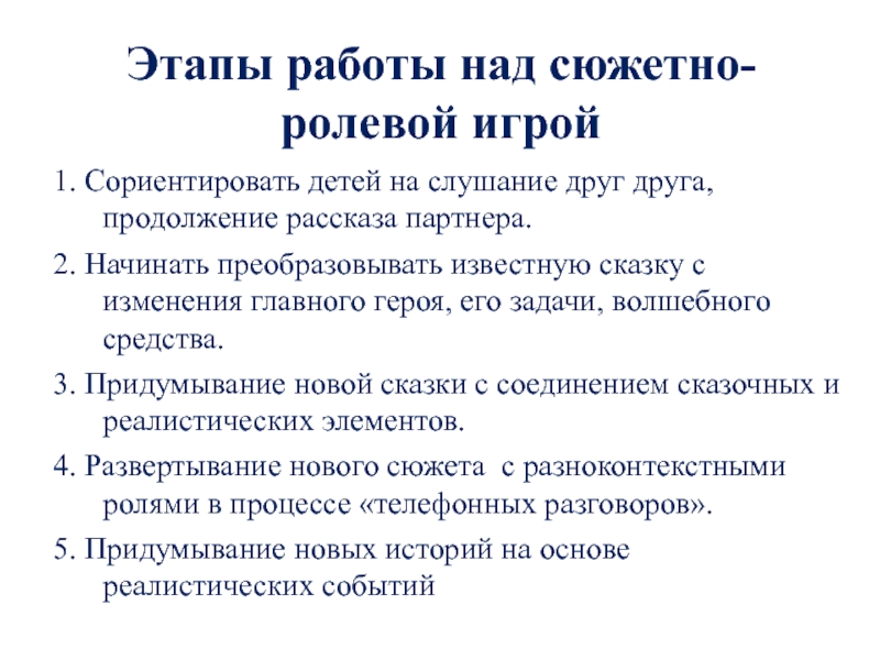 Слайд 24Этапы работы над сюжетно-ролевой игрой