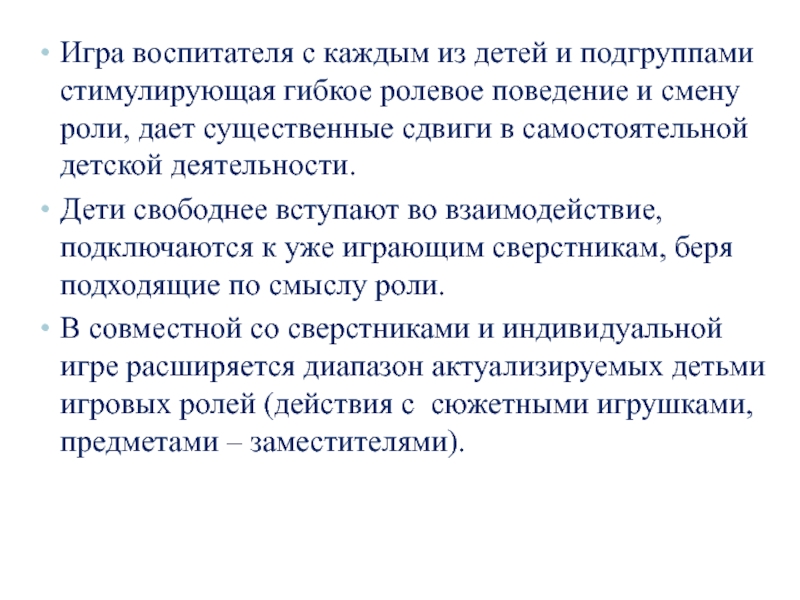 Слайд 22Игра воспитателя с каждым из детей и подгруппами стимулирующая гибкое